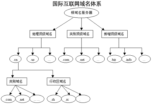 目前互联网上的域名体系中共有三类顶级域名:一是地理顶级域名,共有243个国家和地区的代码。例如.CN代表中国,.JP代表日本,.UK代表英国等等,另一类是类别顶级域名,共有7个:.COM(公司),.NET(网络机构),.ORG(组织机构),.EDU(美国教育),.GOV(美国政府部门),.ARPA(美国军方),.INT(国际组织)。由于互联网最初是在美国发展起来的,所以最初的域名体系也主要供美国使用,所以.GOV,.EDU,.ARPA虽然都是顶级域名,但却是美国使用的。只有.COM,.NET,.ORG成了供全球使用的顶级域名。相对于地理顶级域名来说,这些顶级域名都是根据不同的类别来区分的,所以称之为类别顶级域名。随着互联网的不断发展,新的顶级域名也根据实际需要不断被扩充到现有的域名体系中来。新增加的顶级域名是.BIZ(商业),.COOP(合作公司),.INFO(信息行业),.AERO(航空业),.PRO(专业人士),.MUSEUM(博物馆行业),.NAME(个人)。